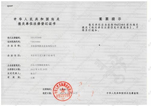報關單位注冊等級證書