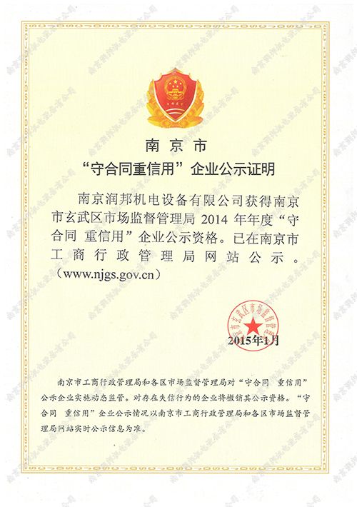 2014年區(qū)級重合同守信用企業(yè)