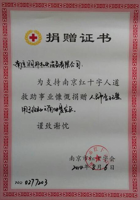南京潤(rùn)邦機(jī)電設(shè)備有限公司為魯?shù)闉?zāi)區(qū)捐款1萬元 2014-08-07